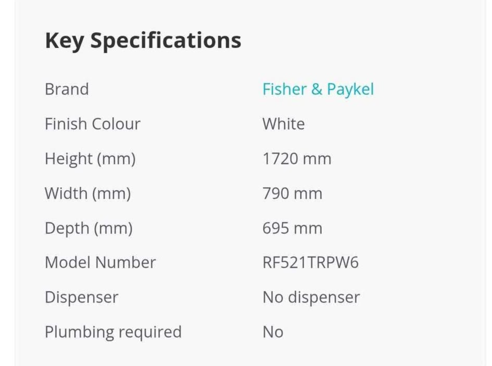 The Fisher Paykel 517L Top Mount Fridge offers ample storage for your household needs, combining generous capacity with reliable performance. Professionally cleaned, serviced, and tested, it comes with a 3-month warranty for your peace of mind. We provide delivery, installation, and removal of your old appliance, with flexible Afterpay options available to suit your budget. Experience convenient and worry-free appliance upgrade with this spacious and efficient fridge.